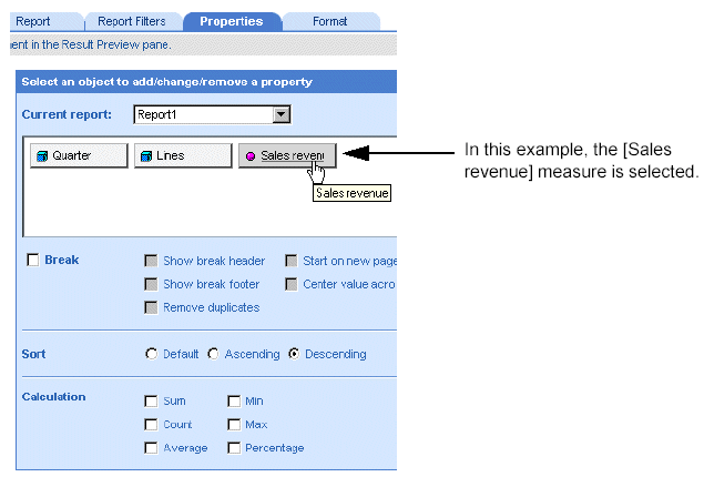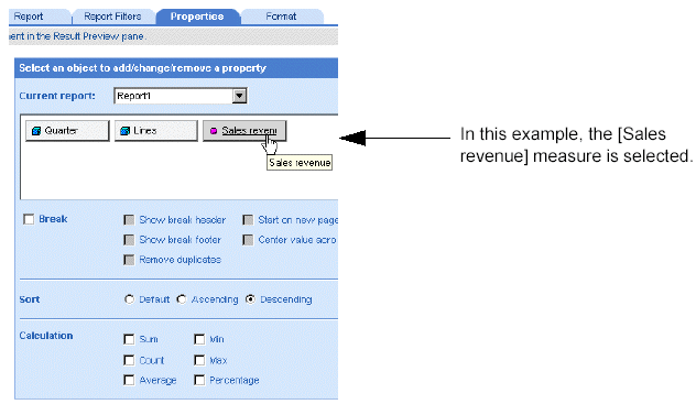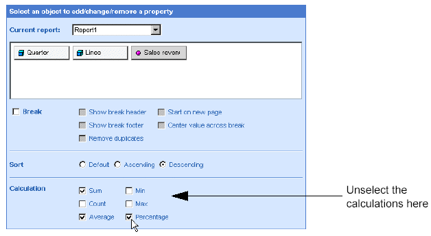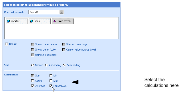 the selected object. Calculation check boxes are grayed out, if a calculation