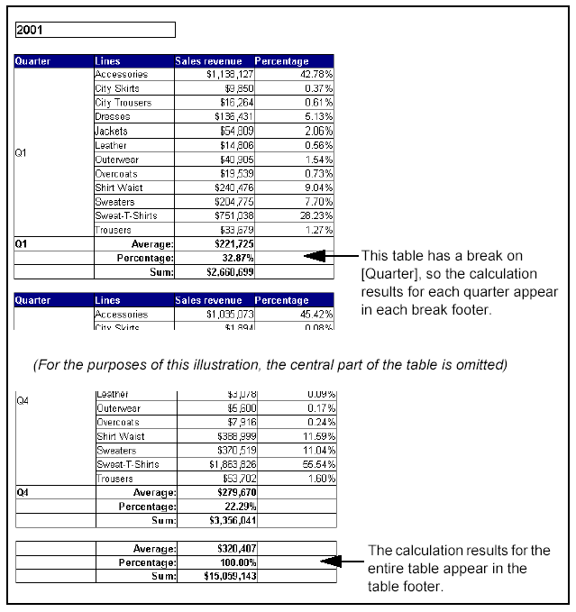 (The blocks on which you can insert calculations are tables, crosstabs,