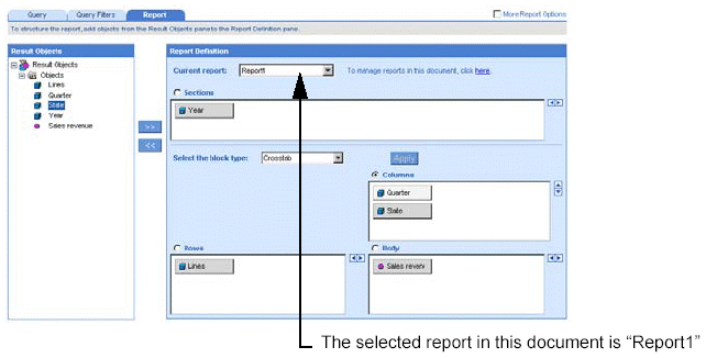The name of the selected report appears in the Current report drop-down
