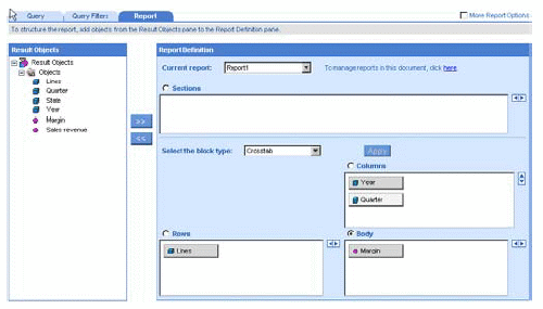 WebIntelligence displays the results organized into the sections you