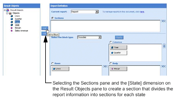 To create a section on a report: