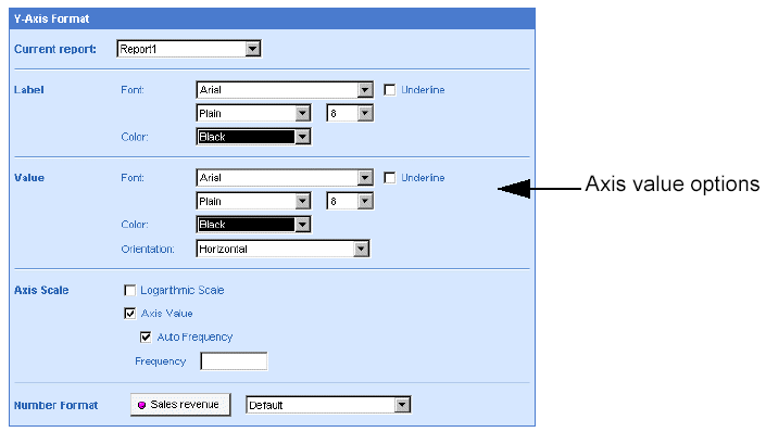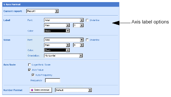 You can specify how numbers, currencies, dates, and times are formatted on chart axes. This is referred to globally as selecting a number format.