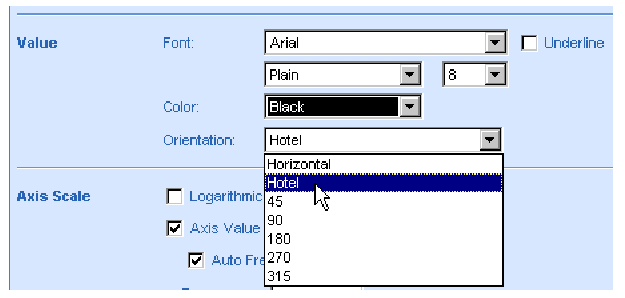 and Z-axis values to display at an angle, click the arrow next to the