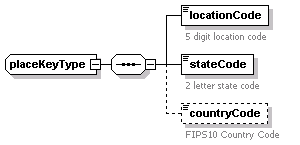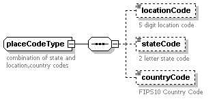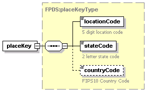 | source | <complexType name="placeKeyType"> <sequence> <element name="locationCode" type="FPDS:locationCodeType"> <annotation> <documentation>5 digit location code</documentation> </annotation> </element> <element name="stateCode" type="FPDS:stateType"> <annotation> <documentation>2 letter state code</documentation> </annotation> </element> <element name="countryCode" type="FPDS:countryShortCodeType" default="US" nillable="true" minOccurs="0"> <annotation> <documentation>FIPS10 Country Code</documentation> </annotation> </element> </sequence> </complexType> |