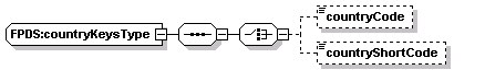 | source | <complexType name="countryKeysType"> <sequence> <choice> <element name="countryCode" type="FPDS:countryCodeType" nillable="true" minOccurs="0"/> <element name="countryShortCode" type="FPDS:countryShortCodeType" nillable="true" minOccurs="0"/> </choice> </sequence> </complexType> |