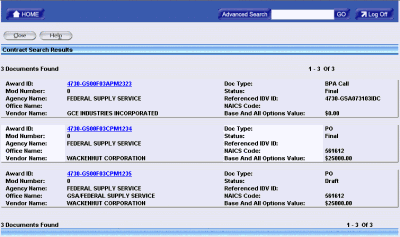 The Advanced Search feature allows you to do complex searches for an award or IDV by using several criteria.