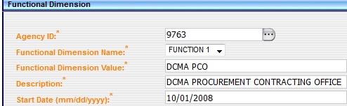 The Functional Dimension module was used by DoD only, and is no longer required. The Functional Dimension module will be removed from the FPDS contract screens, Government Office Selection screen, Government Office Get List and Help files.